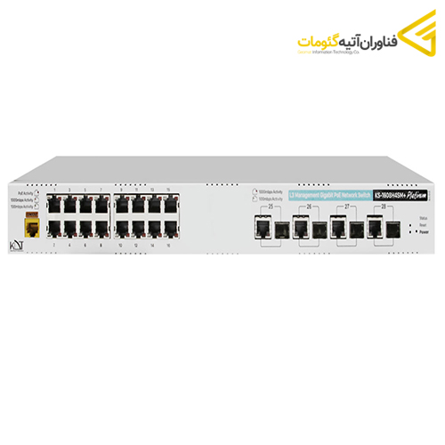 سوئیچ شبکه PoE کی دی تی مدل KP-1608H4SM+ KDT اولین محصول ایرانی میباشد که دارای نشان استاندار CE اروپا می باشد و به دلیل سخت افزار منحصر به فردی که دارد در تمامی شرایط پایدار می باشد.